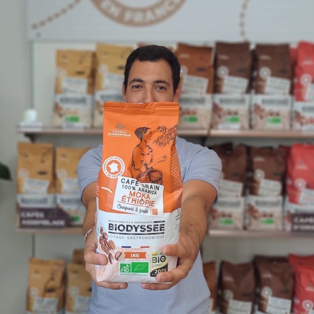 Biodysée est une marque française indépendante née à Libourne, en Gironde, avec une conviction forte : rendre les produits bio accessibles à tous. Nous proposons des cafés bio torréfiés en France, des thés bio en vrac, des tisanes artisanales françaises et bien d'autres produits issus de l’agriculture biologique certifiée. Notre mission ? Démocratiser le bio avec des prix justes, une traçabilité totale et des engagements durables, au service d’une consommation responsable en Gironde et dans toute la France.