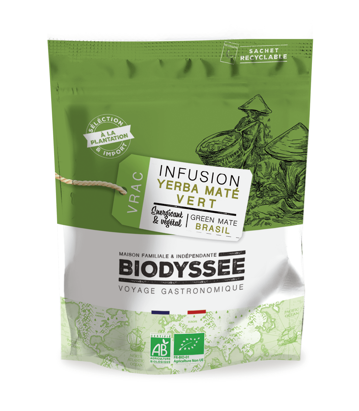 Notre Yerba Maté bio est sélectionnée et importée directement depuis les plantations au Brésil. Caractérisée par ses vertus énergisantes et antioxydantes, elle offre une tasse herbacée, fraîche et tonique grâce à ses larges feuilles vertes. À déguster chaud ou froid, de préférence jusqu’en début d’après-midi.